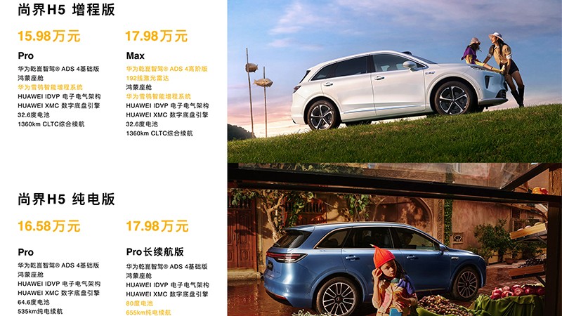在至境L7发布的前不久,上汽与华为合作的首款车尚界H5发布。最引人关注的当属,尚界H5把满血华为辅助驾驶的门槛带到了17.98万元,如果算上权益后需要花1.2万元选装的ADS功能包,满血华为的门槛实际上是19万元左右。