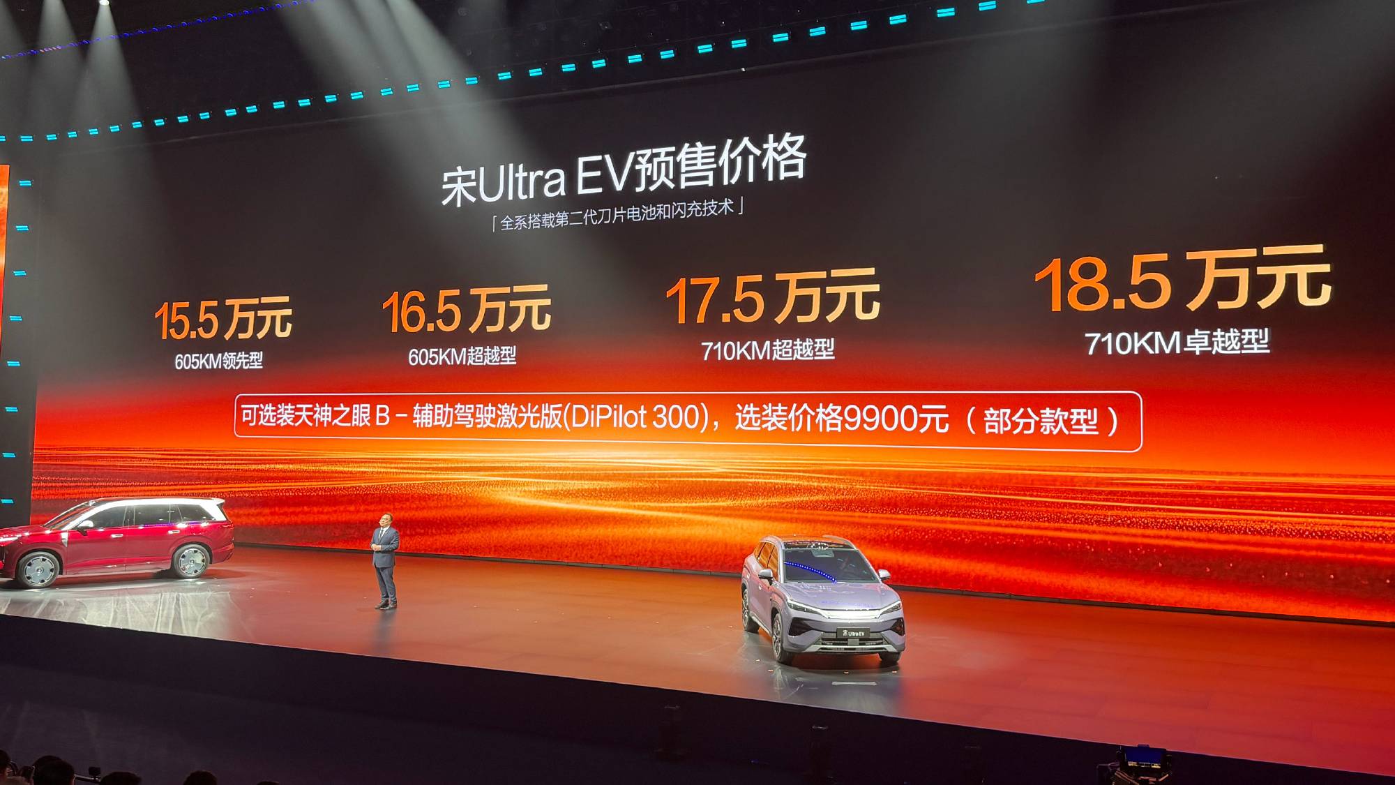 杀伤力最大的,无疑是宋Ultra,预售价格区间在15.5-18.5万元。这相当于是直接掀了20万元以内纯电车型的桌子,先是按照比亚迪的玩法,这只是预售价格,正式上市肯定还有惊喜。再是,虽然它的名字叫宋Ultra,但实际上在尺寸和配置等方面,它是被很多迪粉认为更像是比亚迪唐的换代。