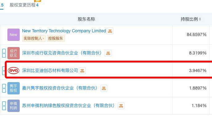 而在2024年12 月,深圳市卓驭科技有限公司今日发生工商信息变动。新增三家股东,分别是比亚迪旗下的深圳比亚迪创芯材料有限公司、苏州申祺利纳绿色股权投资合伙企业(有限合伙)以及嘉兴隽宇股权投资合伙企业(有限合伙)。