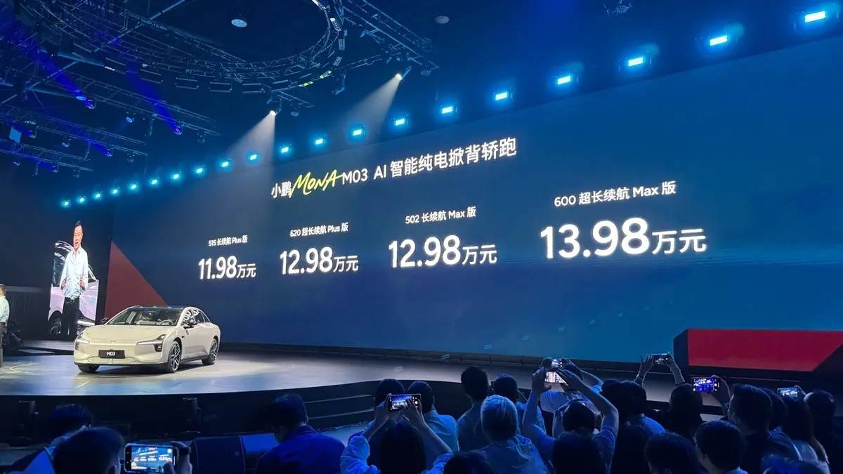 第一次是2025年5月,小鹏MONA M03推出新款,支持城区辅助驾驶的Max版本从最初预告的15万元级别,下探了3万元到最低12.98万元。