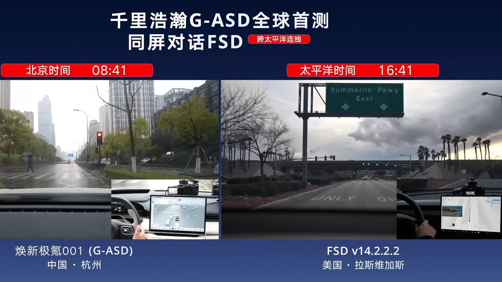 所谓关公战秦琼,是吉利在2026 CES上最新发布的G-ASD在中国的早高峰里,同频挑战特斯拉最新的FSD V14.2挑战美国早高峰。横跨太平洋的这场技术PK,自然是无法回答它们谁更强的问题。
